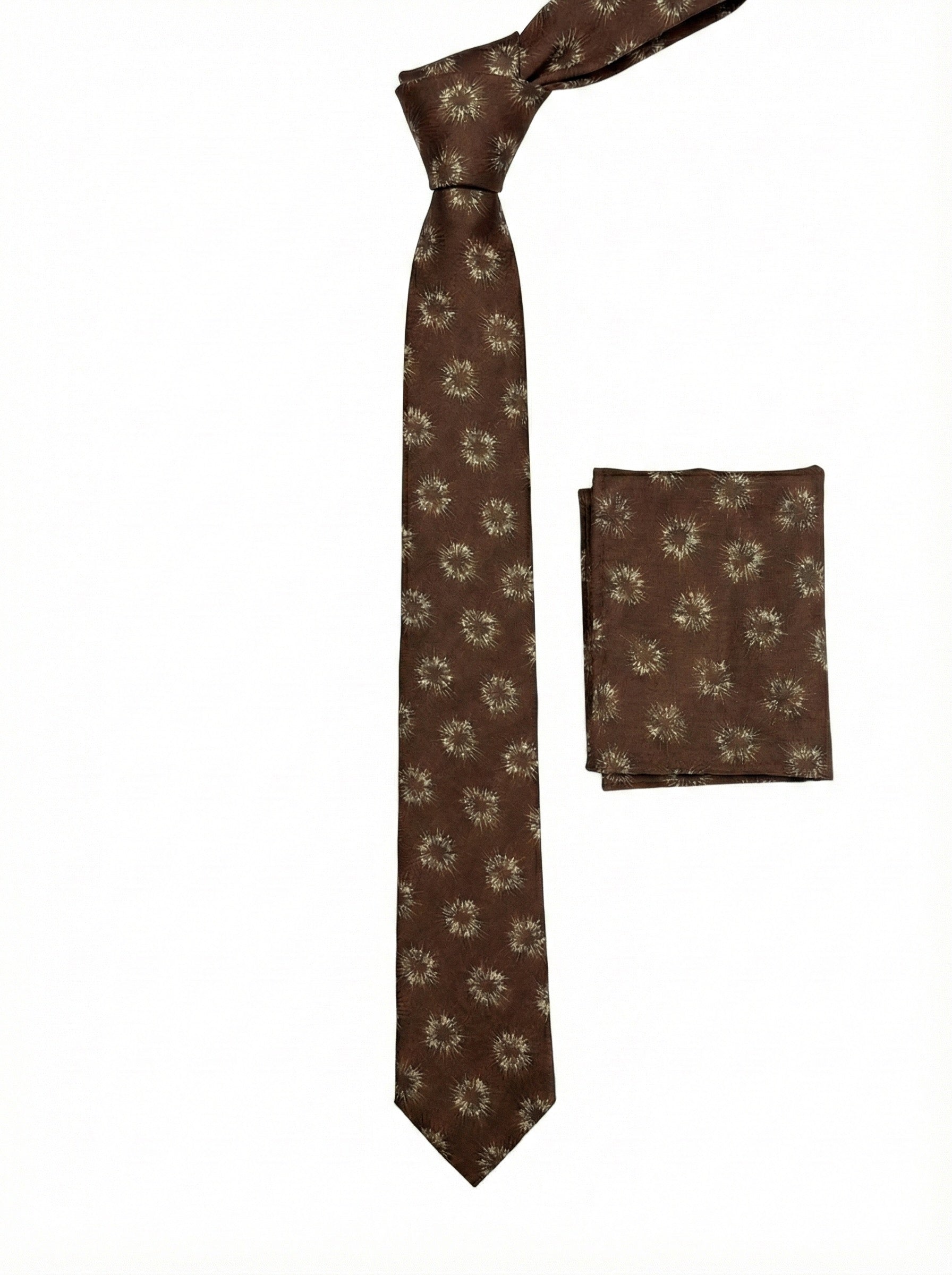 Chocolate Brown & Gold Sunburst Jacquard Tie & Pocket Square Set