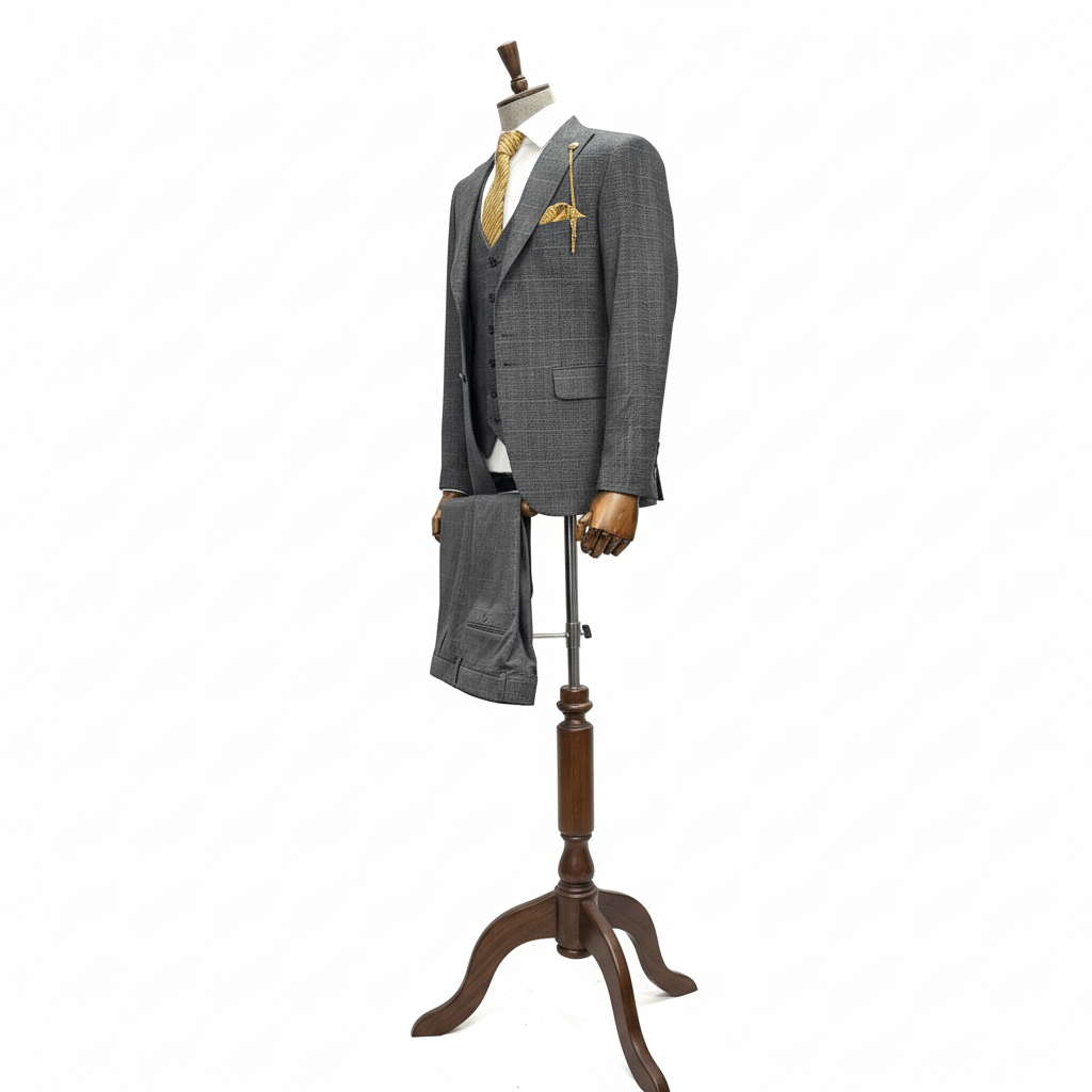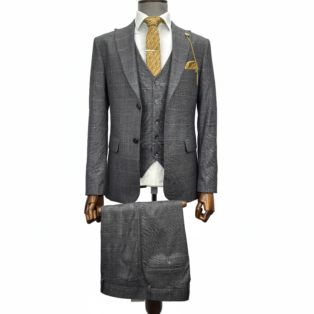 Men's Grey Glen Plaid 3-Piece Suit – Modern Slim Fit