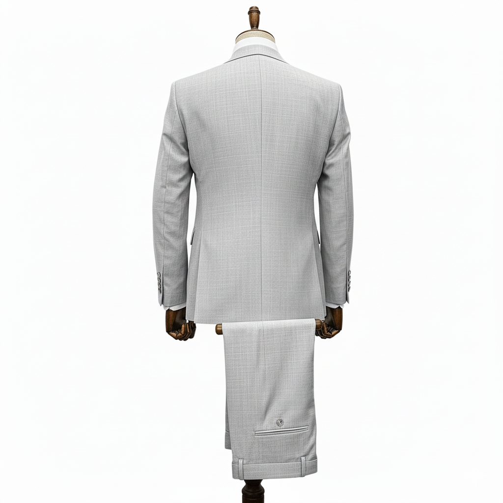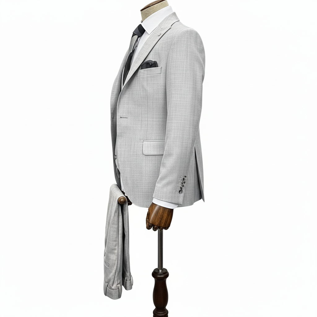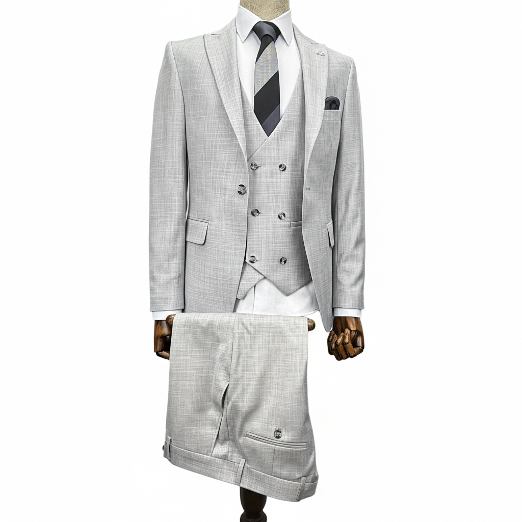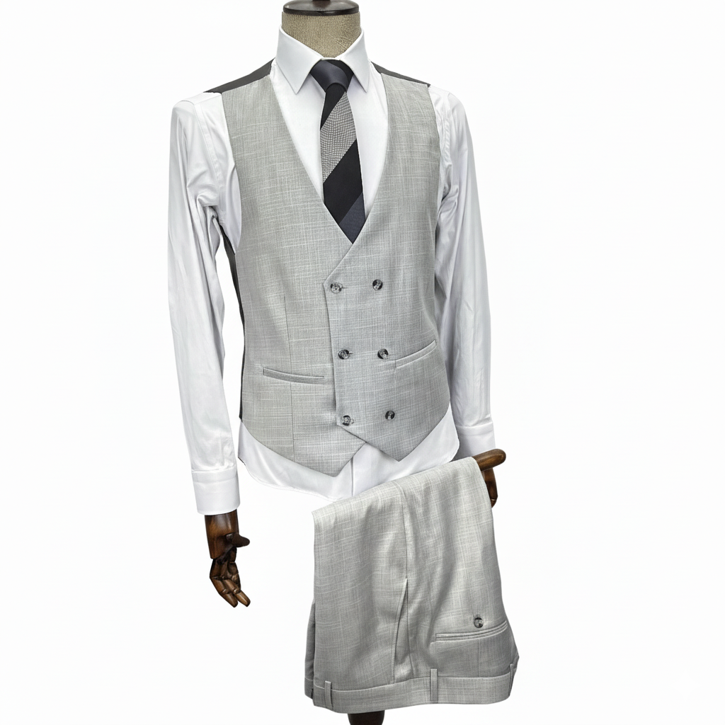 Men's Light Grey Glen Plaid 3-Piece Suit – Double-Breasted Waistcoat