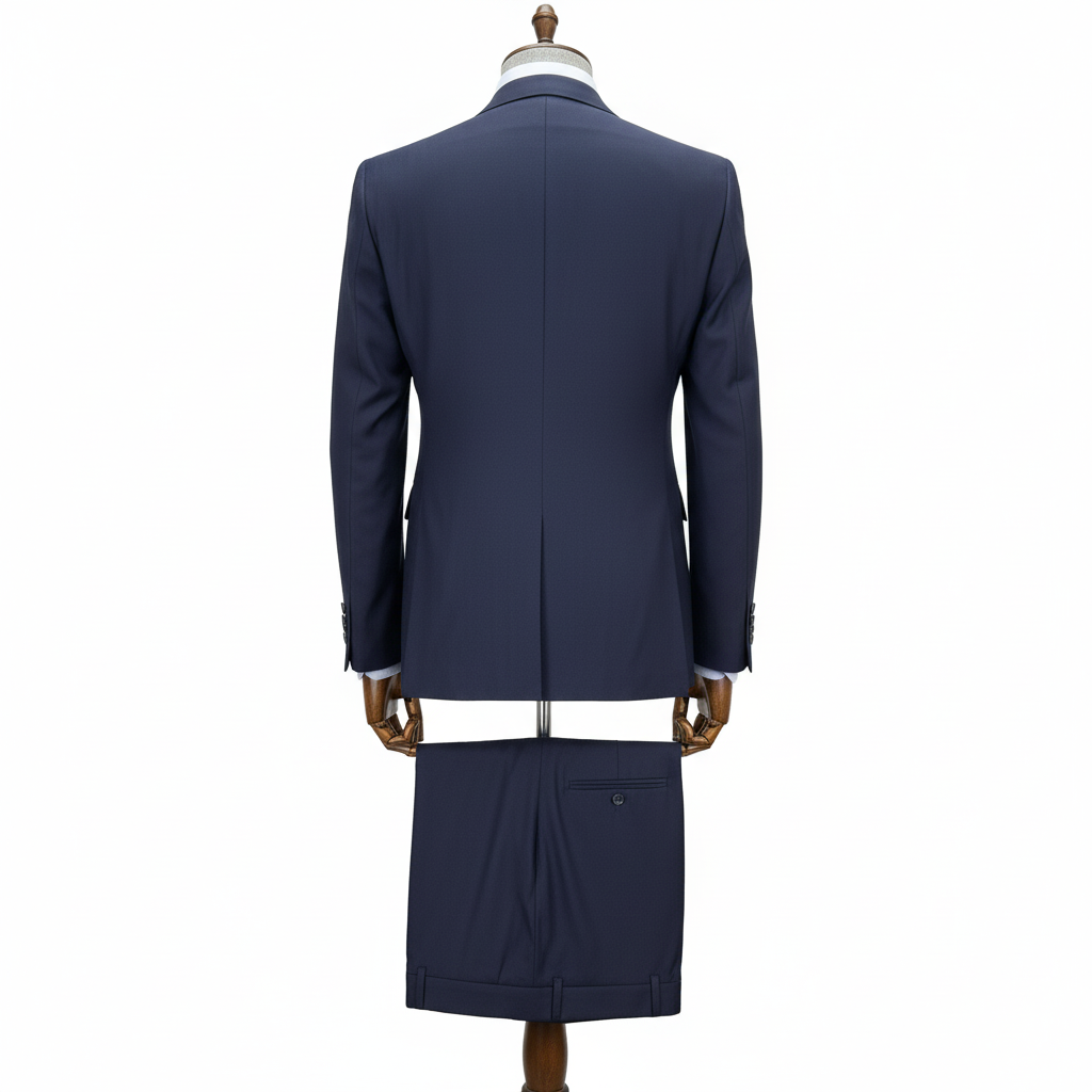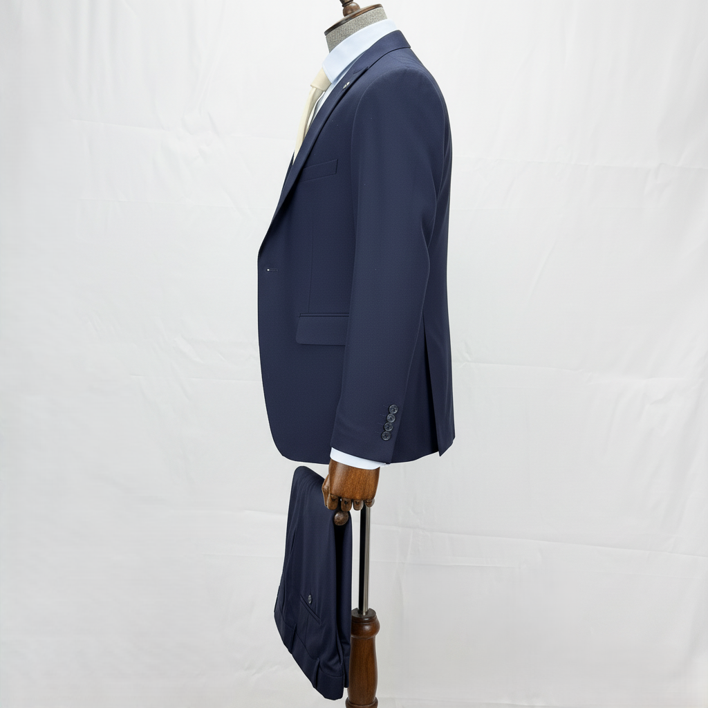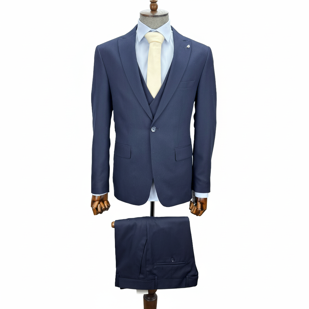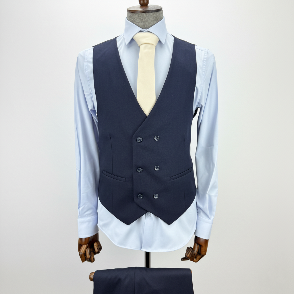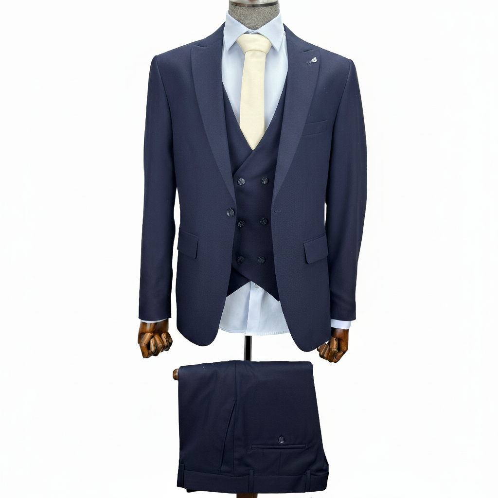 Men's Navy Blue 3-Piece Suit with Double-Breasted Waistcoat