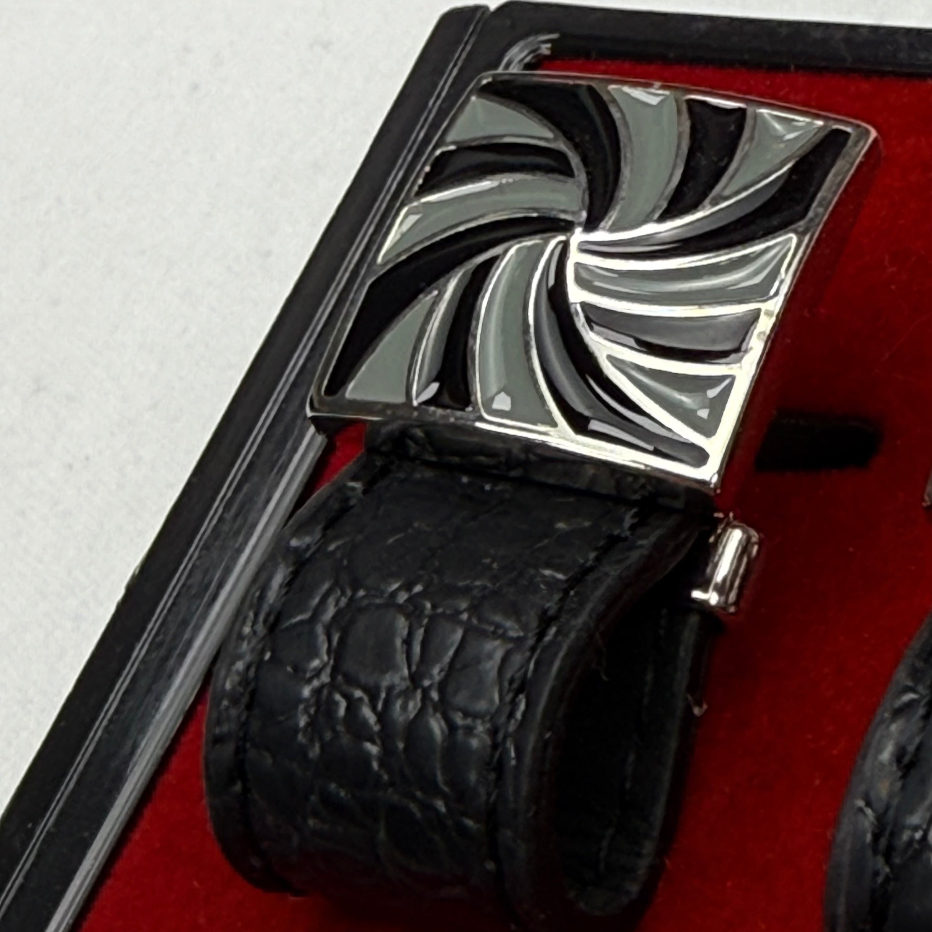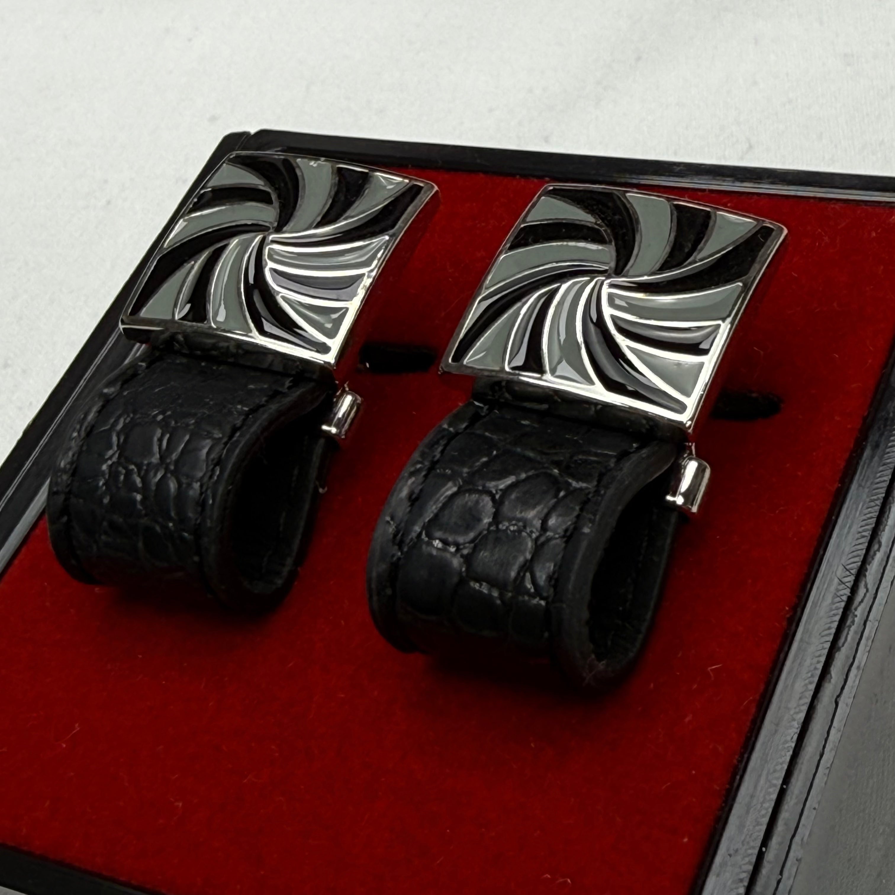 Modern Monochrome Swirl Cufflinks with Croc-Embossed Detail