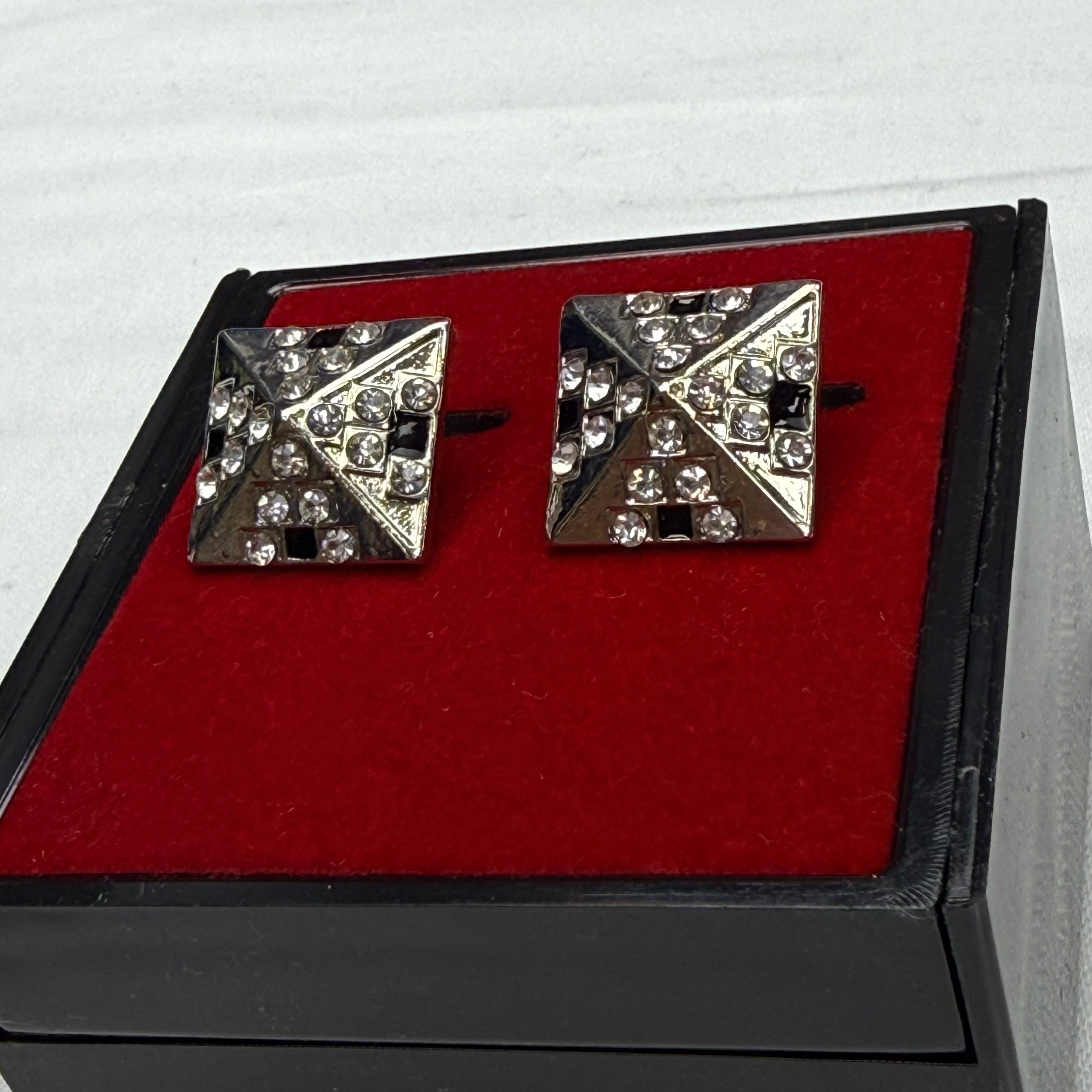 Square Art Deco Pyramid Crystal & Black Enamel Cufflinks