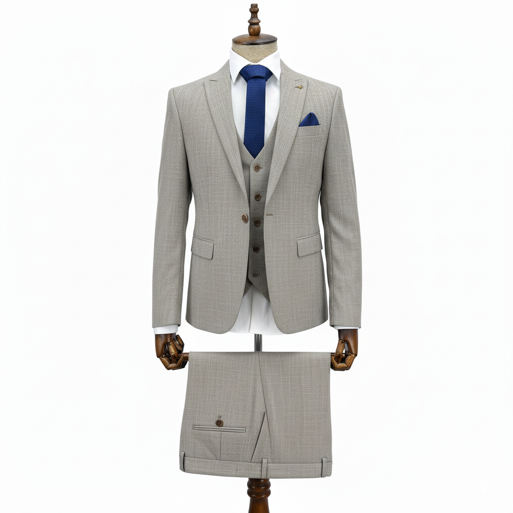 Men's Beige Textured 3-Piece Suit – Slim Fit Wedding Set