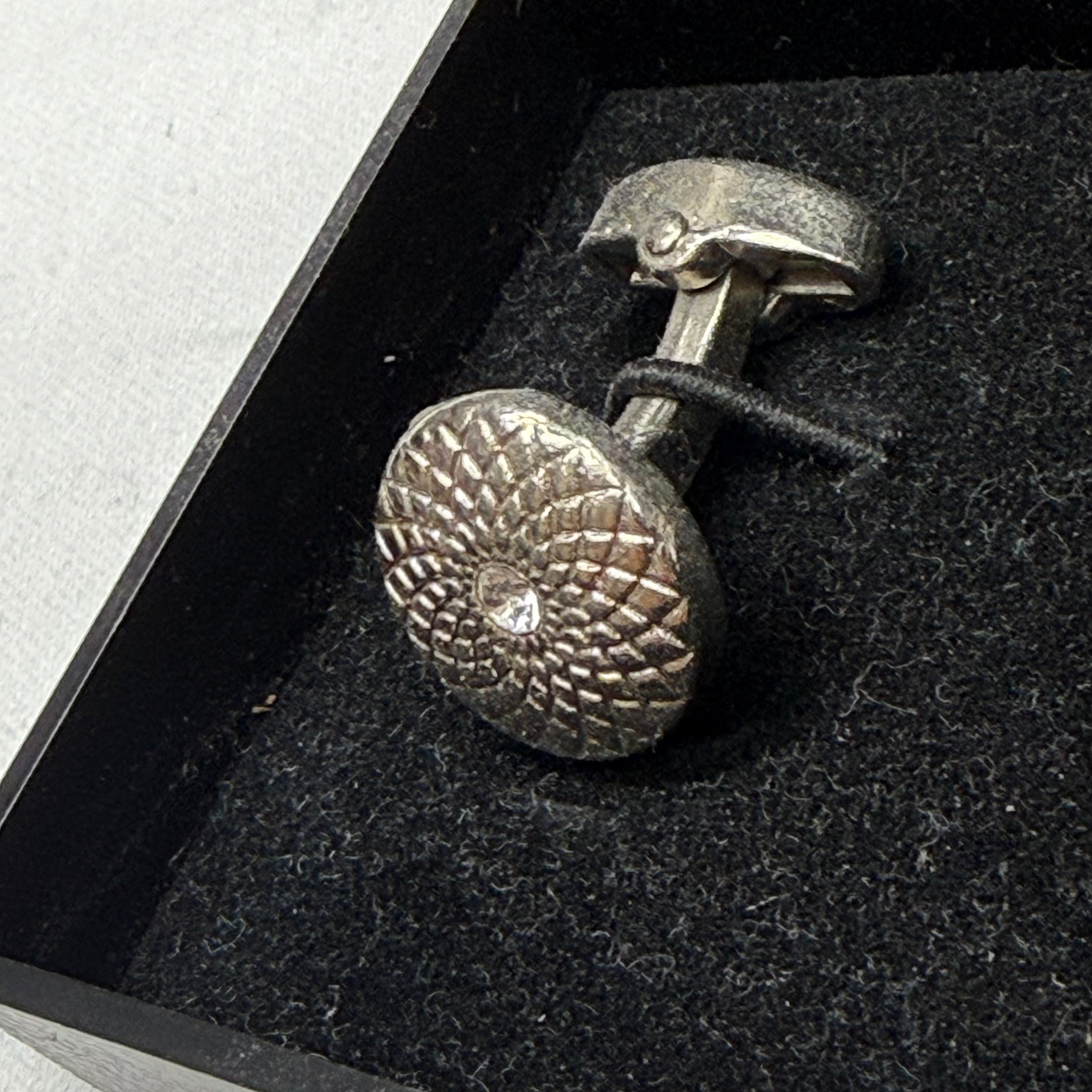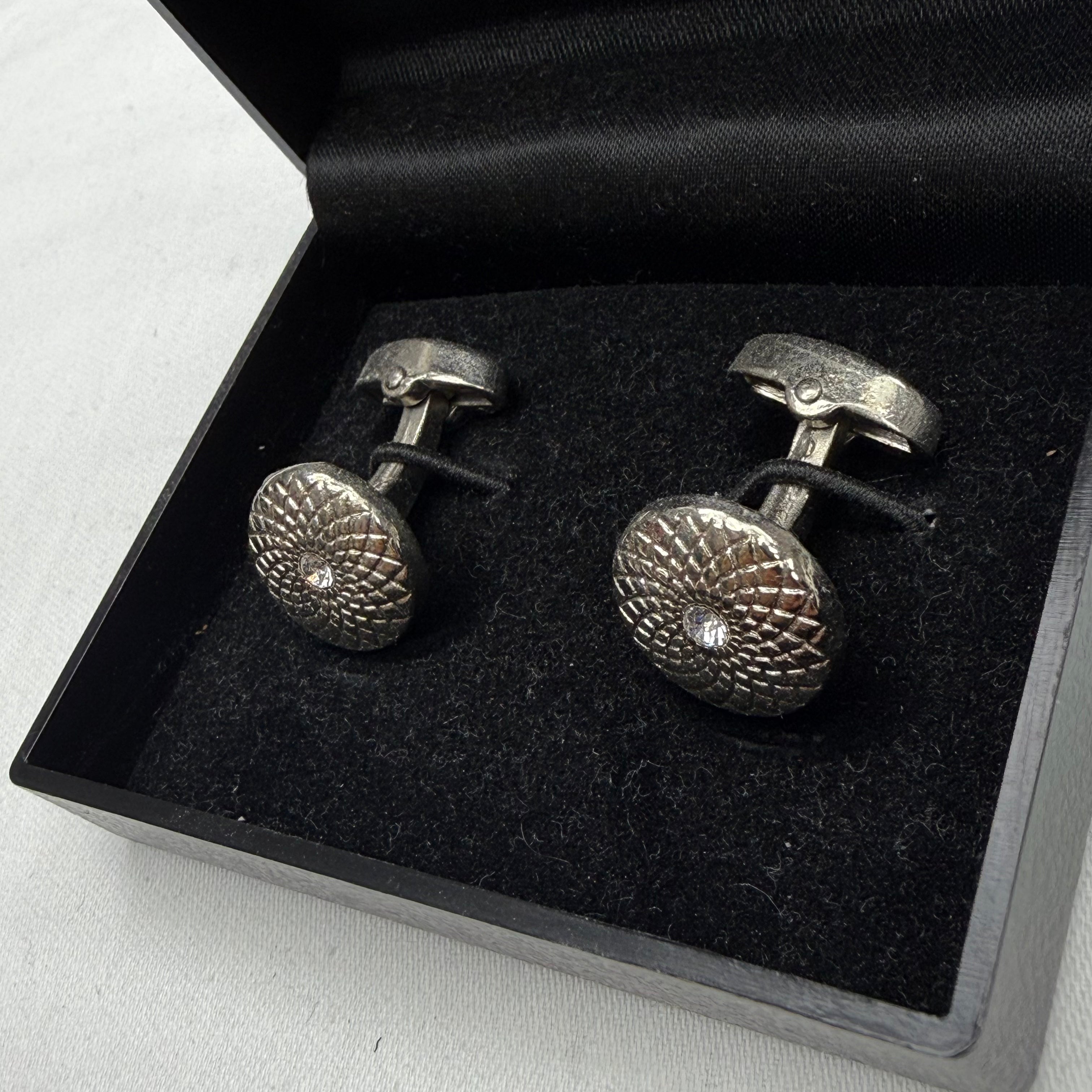 Textured Silver Crystal Center Cufflinks