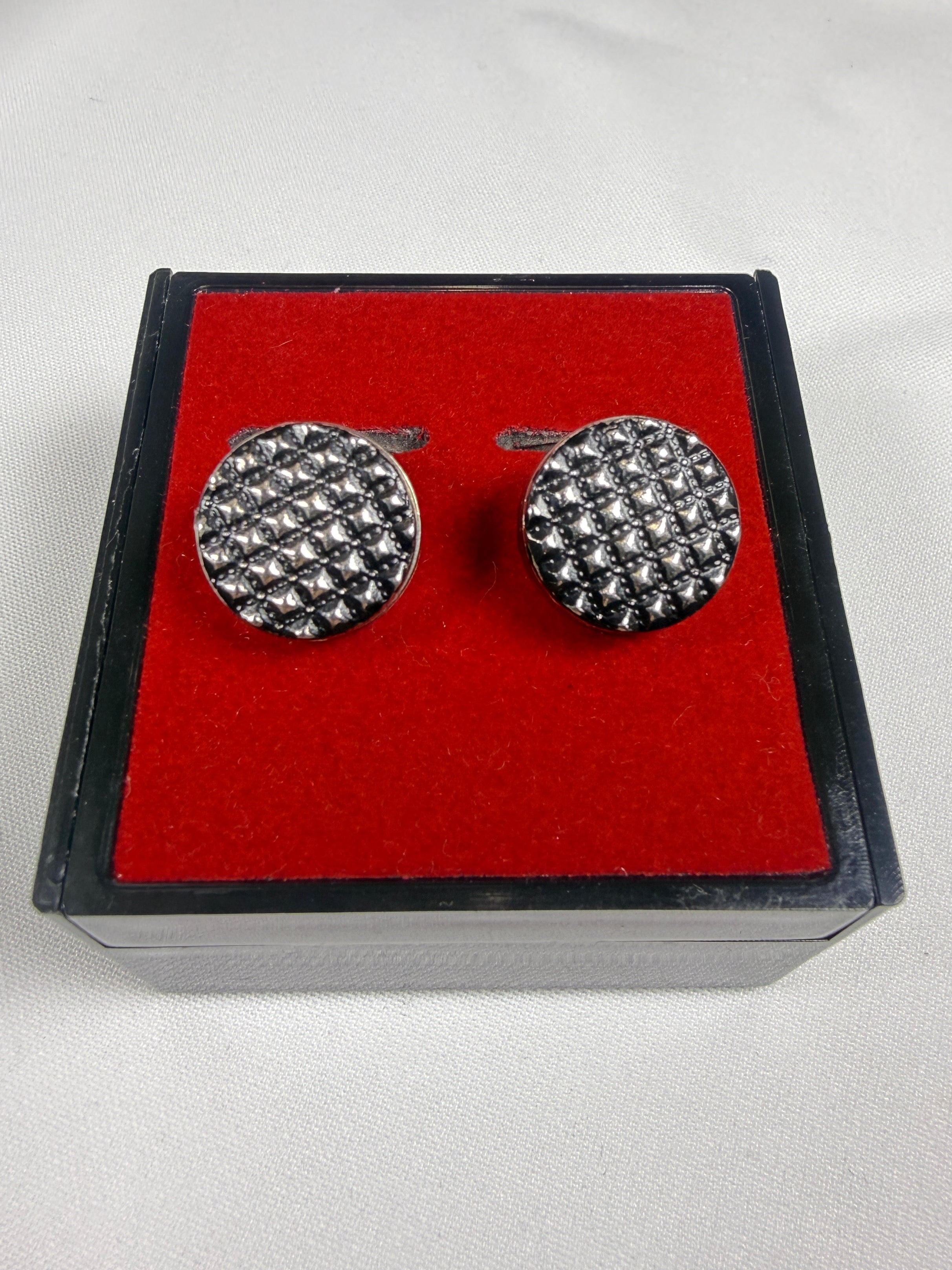 Textured Silver-Tone Pyramid Stud Round Cufflinks
